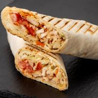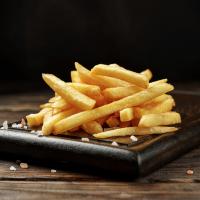 Mięso, frytki, surówka firmowa, ogórek, pomidor, sos.
